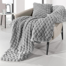 Σετ γούνινο διακοσμητικό ριχτάρι καναπέ και διακοσμητική μαξιλαροθήκη σε γκρι χρώμα με ανάγλυφη επιφάνεια από την εταιρεία Guy Laroche. Είναι κατασκευασμένα από 100% polyester οικολογική γούνα που προσφέρει πολύ απαλή υφή. Μπορεί να χρησιμοποιηθεί και σαν κουβέρτα καναπέ που θα σας προσφέρει ζεστασιά τις κρύες νύχτες του χειμώνα και παράλληλα προστασία για τους καναπέδες σας.