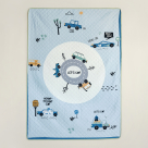 Μονό κουβερλί από την εταιρεία Nima. Έχει σχέδιο με αυτοκινητάκια σε λευκό χρώμα με μπλε-μαύρες λεπτομέρειες. Η άλλη όψη είναι μονόχρωμη πράσινη. Το εξωτερικό ύφασμα είναι 100% microfiber, που προσφέρει απαλή υφή. Εσωτερικά έχει λεπτή πολυεστερική βάτα, που το καθιστά ιδανικό σκέπασμα για τους ανοιξιάτικους και καλοκαιρινούς μήνες.