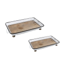 Δίσκοι διακόσμησης από την εταιρεία Espiel. Είναι κατασκευασμένοι από μεταλλικό υλικό σε λευκό χρώμα με μαύρες λεπτομέρειες ενώ η εσωτερική επιφάνειά τους είναι ξύλινη. Τοποθετήστε τους στην τραπεζαρία ή το σαλόνι και χαρίστε στον χώρο σας μια μοναδική διακοσμητική πινελιά.