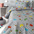 Μονό κουβερλί από την εταιρεία Palamaiki για το παιδικό κρεβάτι. Σε μαύρο-γκρι χρώμα με λευκές-πολύχρωμες λεπτομέρειες και μοντέρνο σχέδιο. Το ύφασμα είναι 100% microfiber και εσωτερικά διαθέτει λεπτή πολυεστερική βάτα που το καθιστά ιδανικό σκέπασμα για τους ανοιξιάτικους και τους καλοκαιρινούς μήνες. Συνδυάστε το με τα υπόλοιπα προϊόντα της ίδιας σειράς για ένα ολοκληρωμένο αποτέλεσμα.