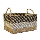 Καλάθι αποθήκευσης με πλεκτό σχέδιο σε ορθογώνιο σχήμα, από την εταιρεία Mod. Είναι κατασκευασμένο από φυσική ψάθα σε μπεζ χρώμα με λευκές και μαύρες λεπτομέρειες. Διαθέτει λαβές για εύκολη μεταφορά. Ιδανικό για τη κουζίνα ή τη τραπεζαρία σαν διακοσμητικό ή σαν αποθηκευτικό χώρο για μικροπράγματα.
