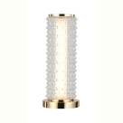Επιτραπέζιο φωτιστικό με μοντέρνο σχεδιασμό, από την εταιρεία Viokef. Είναι κατασκευασμένο από διάφανο γυαλί με ανάγλυφο σχέδιο και έχει μεταλλικό σκελετό σε χρυσό χρώμα. Διαθέτει 1 ενσωματωμένη πλακέτα Led με ισχύ 19Watt, θερμού λευκού φωτισμού 3000K και φωτεινότητας 1600Lm. Συνδυάστε το με τα υπόλοιπα είδη της ίδιας συλλογής για ένα ολοκληρωμένο αποτέλεσμα.