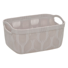 Καλάθιi αποθήκευσης κατασκευασμένο από πλαστικό υλικό με διάτρητο σχέδιο, σε μπεζ χρώμα. Διαθέτει λαβές για εύκολη μεταφορά. Είναι ιδανικά για την οργάνωση του μπάνιου, του δωματίου, της βιβλιοθήκης ακόμα και του παιδικού δωματίου.