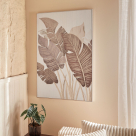 Πίνακας τοίχου με κορνίζα που θα χαρίσει μοναδικό ύφος στο χώρο σας. Ο πίνακας είναι κατασκευασμένος από ξύλο πεύκου σε εκρού χρώμα με tropical σχέδιο σε μπεζ αποχρώσεις. Το κάδρο και η πλάτη του πίνακα είναι από ξύλο MDF_Ε1 σε εκρού χρώμα. Ιδανικός πίνακας για να διακοσμήσετε το χώρο σας.