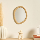 Επιτοίχιος καθρέφτης με μίνιμαλ στυλ και ακανόνιστο σχήμα, ιδανικός για να διακοσμήσει το υπνοδωμάτιο, το χωλ, το γραφείο, ή σε όποιο άλλο χώρο ταιριάζει. Το πλαίσιο είναι κατασκευασμένο από MDF_1 σε μπεζ χρώμα και έχει σχέδιο με σχοινί. Διαθέτει υποδοχή για κρέμασμα στο πίσω μέρος. Μπορεί να λειτουργήσει ως χρηστικό και ως διακοσμητικό στοιχείο στο χώρο σας. Συνδυάστε τον με τα υπόλοιπα προϊόντα της ίδιας σειράς για ένα ολοκληρωμένο αποτέλεσμα.