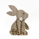 Επιτραπέζια διακοσμητική φιγούρα λαγός. Είναι κατασκευασμένος από ξύλο σε φυσικό χρώμα με καφέ λεπτομέρειες. Τοποθετήστε σε οποιονδήποτε χώρο θέλετε να διακοσμήσετε πασχαλινά.