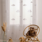 Κουρτίνα για το παιδικό δωμάτιο, σε λευκό χρώμα με λευκό σχέδιο συννεφάκια. Είναι κατασκευασμένη από 100% polyester και ενσωματωμένα τρουκς διαμέτρου 4cm για εύκολη τοποθέτηση. Το ύφασμα είναι χαμηλής σκίασης που επιτρέπει την είσοδο του εξωτερικού φωτός. Διακοσμήστε την στο χώρο του παιδικού ή βρεφικού δωματίου.