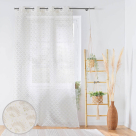 Κουρτίνα με λευκό φόντο και μοντέρνο σχέδιο σε εκρού χρώμα. Το ύφασμα είναι βουάλ 100% πολυεστερικό με χαμηλή σκίαση, που επιτρέπει στο φως να περνάει και έχει μεταλλιζέ χρυσές λεπτομέρειες. Στο επάνω μέρος διαθέτει τρουκς κρεμάσματος με διάμετρο 4cm για εύκολη τοποθέτηση. Συνδυάστε το χρώμα και το ύφος της κουρτίνας με τον χώρο σας και ανανεώστε την διακόσμησή του.
