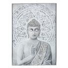 Πίνακας τοίχου με κορνίζα που θα χαρίσει μοντέρνο ύφος στο χώρο σας. Ο καμβάς είναι από polyester σε γκρι φόντο με τυπωτό σχέδιο με τον Βούδα. Το κάδρο είναι από ξύλο MDF σε γκρι χρώμα. Ιδανικός για να διακοσμήσει ένα τοίχο του σπιτιού σας.
