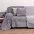 Ριχτάρι διπλής όψης για τον τριθέσιο καναπέ σε γκρι φόντο, εκρού λεπτομέρειες και γεωμετρικό σχέδιο από την εταιρία Viopros. Είναι κατασκευασμένο από 100% ζακάρ chenille και διαθέτει διακοσμητικά κρόσια στο τελείωμα. Ιδανικό για τους χειμερινούς μήνες του χρόνου.
