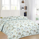 Παιδικό κουβερλί από την εταιρεία Adam Home σε βεραμάν φόντο με ουράνια τόξα στο σχέδιο. Το εξωτερικό ύφασμα είναι κατασκευασμένο από 100% microfiber ενώ η γέμιση από πολυεστερική βάτα βάρους 200gsm. Η σύνθεσή του το καθιστά ιδιαίτερα ανθεκτικό και απαλό. Ιδανικό ανοιξιάτικο ή καλοκαιρινό σκέπασμα για κάθε παιδικό δωμάτιο.