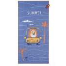 Παιδική πετσέτα μικροϊνών από την εταιρεία Nima. Είναι διπλής όψης με την μια μεριά σε μπλε χρώμα με πορτοκαλί λεπτομέρειες και σχέδιο λιοντάρι, ενώ η άλλη πλευρά είναι σε πορτοκαλί χρώμα και μοντέρνο σχέδιο. Είναι κατασκευασμένη από 100% microfiber που την καθιστά που την καθιστά ελαφριά και υπέρ-απορροφητική και στεγνώνει γρήγορα. Δεν κολλάει η άμμος πάνω της, είναι ελαφριά και έχει έναν μικρό γάντζο για να την κρεμάτε παντού. Ιδανική καλοκαιρινή επιλογή για να χαρίσει χαρά και όρεξη για περισσότερο παιχνίδι στους μικρούς μας φίλους.