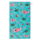 Παιδική πετσέτα θαλάσσης από την εταιρεία Palamaiki. Σε τυρκουάζ χρώμα με ροζ-κίτρινες-μαύρες λεπτομέρειες και σχέδιο ζωάκια τυπωμένο με την μέθοδο της ψηφιακής εκτύπωσης. Είναι κατασκευασμένη από 100% microfiber που προσφέρει μοναδική απορροφητικότητα. Ιδανική καλοκαιρινή επιλογή για να χαρίσει χαρά και όρεξη για περισσότερο παιχνίδι στους μικρούς μας φίλους.