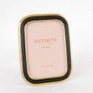 Κορνίζα από την εταιρεία Estheti σε μαύρο χρώμα με χρυσές λεπτομέρειες και μοντέρνο σχέδιο. Είναι κατασκευασμένη από πολυρεζίνη. Η κορνίζα είναι επικαθήμενη. Η επικαθήμενη σχεδίαση της δίνει την δυνατότητα να τοποθετηθεί εύκολα σε οποιοδήποτε τραπέζι ή επιφάνεια. Φυλάξτε τις πιο ξεχωριστές στιγμές της ζωής σας σε μια μοναδική κορνίζα.