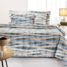 Σετ γίγας σεντόνια με μοντέρνο σχέδιο σε μπλε αποχρώσεις με μπεζ-εκρού λεπτομέρειες από την εταιρεία Guy Laroche. Το ύφασμά τους είναι 100% βαμβάκι 160 κλωστών, που τα καθιστά ανθεκτικά, απαλά και μαλακά. Το κατωσέντονο έχει μοντέρνο σχέδιο σε λευκό-μπεζ χρώμα. Στο σετ περιλαμβάνονται οι μαξιλαροθήκες με φάσα με το σχέδιο του πανωσέντονου. Συνδυάστε τα με τα υπόλοιπα προϊόντα της ίδιας σειράς για ένα ολοκληρωμένο αποτέλεσμα.**Το σχέδιο στις μαξιλαροθήκες ενδέχεται να διαφέρει από αυτό της φωτογραφίας, καθώς η εταιρεία παράγει μαξιλαροθήκες από όλο το σχέδιο του υφάσματος και τις συσκευάζει με τυχαία σειρά.**