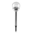 Ηλιακό φωτιστικό καρφωτό εξωτερικού χώρου από την εταιρεία Grundig. Είναι κατασκευασμένο από ανοξείδωτο ατσάλι σε ασημί χρώμα. Μπορεί να τοποθετηθεί στον κήπο, την αυλή ή την βεράντα μέσα στο χώμα. Έχει 1 λάμπα led με πολύχρωμο φως. Τροφοδοτείται από μία μπαταρία Ni-MH 1,2V, που περιλαμβάνεται. Κατά τη διάρκεια της ημέρας η ηλιακή ενέργεια επαναφορτίζει την εσωτερική μπαταρία μέσω του ενσωματωμένου πάνελ και το βράδυ ανάβει αυτόματα. Μετά από πλήρη φόρτιση έχει αυτονομία 6-8 ωρών. Το μίνιμαλ στυλ του θα διακοσμήσει και θα φωτίσει τον κήπο και τους εξωτερικούς χώρους του σπιτιού ή του εξοχικού σας.