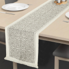 Runner με μοντέρνο σχέδιο σε εκρού-μπεζ χρώμα από την εταιρεία Whitegg. Το ύφασμα έχει υφή λινού και σύνθεση 100% polyester που το κάνει ανθεκτικό και μαλακό. Ιδανικό για να διακοσμήσει την τραπεζαρία σας.