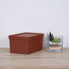 Κουτί αποθήκευσης 681-67 της εταιρείας Viomes, κατασκευασμένο από ανθεκτικό πλαστικό υλικό σε καφέ απόχρωση. Διαθέτει καπάκι ώστε να προστατεύεται το περιεχόμενο του και να μπορεί να στοιβαχτεί σταθερά το ένα κουτί πάνω στο άλλο. Είναι κατάλληλο για να αποθηκεύσετε ότι επιθυμείτε και να οργανώσετε διάφορα αντικείμενα καθημερινής και μη χρήσης. Ο διακριτικός και μίνιμαλ σχεδιασμός του το καθιστά ιδανικό για όλους τους χώρους σπιτιού όπως υπνοδωμάτια, μπάνιο, κουζίνα, σαλόνι και τραπεζαρία. Είναι ιδιαίτερα χρήσιμο και στα παιδικά δωμάτια, καθώς διαθέτει στρογγυλεμένες γωνίες. Συνδυάστε το με κουτιά Nova μεγαλύτερης διάστασης ή διαφορετικής απόχρωσης για ένα ολοκληρωμένο αποτέλεσμα. Τα προϊόντα Viomes είναι ελληνικής κατασκευής και εξαιρετικής ποιότητας.