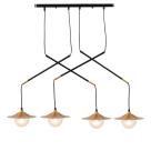 Φωτιστικό οροφής με ράγα της εταιρείας Aca Decor σε μοντέρνο στυλ. Είναι κατασκευασμένο από μέταλλο σε μαύρο και χρυσό ματ χρώμα. Φέρει 4 γυάλινες μπάλες με αμμοβολή. Υπάρχει δυνατότητα αυξομείωσης του συνολικού ύψους έως 128εκ. μέσω των 4 καλωδίων, τα οποία είναι κατασκευασμένα από μαύρο PVC. Η βάση είναι μαύρη μεταλλική. Τύπος ντουί: 4xG9 και θέσεις για 4 λαμπτήρες έως 25W (δεν συμπεριλαμβάνονται).