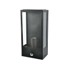 Απλίκα εξωτερικού χώρου της εταιρείας Aca Decor με αισθητήρα κίνησης και μέρας-νύχτας. Σε μοντέρνο στυλ, με προστασία από υγρασία και και βαθμό στεγανότητας IP44, είναι ιδανική για να φωτίσετε και να διακοσμήσετε τον κήπο και τους εξωτερικούς χώρους του σπιτιού ή του εξοχικού σας. Είναι κατασκευασμένη από ατσάλι σε μαύρο χρώμα και διάφανο γυαλί. Τύπος ντουί: 1xΕ27 και θέση για ένα λαμπτήρα έως 60W (δεν συμπεριλαμβάνεται).