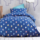 Μονό κουβερλί από την εταιρεία Rythmos σε μπλε χρώμα και σχέδιο τερατάκια. Η σύνθεσή του εξωτερικού υφάσματος είναι από 100% βαμβάκι 144 κλωστών που το καθιστά απαλό και ανθεκτικό ενώ η γέμιση είναι από πολυεστερική βάτα. Ιδανικό σκέπασμα για τους καλοκαιρινούς-ανοιξιάτικους μήνες. Στο σετ περιλαμβάνεται η μαξιλαροθήκη φάκελος.