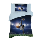 Παιδικά σεντόνια σε μπλε χρώμα, με σχέδιο ποδοσφαίρου ψηφιακής εκτύπωσης. Η ποιότητά τους από 100% βαμβακερή ποπλίνα, 144 κλωστών, προσφέρει ανθεκτικότητα. Το κατωσέντονο που διαθέτει το σετ είναι σε γαλάζιο χρώμα.