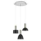 Φωτιστικό οροφής της εταιρείας Homelighting σε μοντέρνο στυλ. Είναι κατασκευασμένο από μέταλλο σε ασημί απόχρωση με 3 υφασμάτινα καπέλα σε λευκό, μπεζ και γκρι χρώμα. Υπάρχει δυνατότητα αυξομείωσης του συνολικού ύψους έως 300εκ. μέσω των 3 καλωδίων. Η βάση τοποθέτησης είναι ασημί μεταλλική. Τύπος ντουί: 3xE27 και θέσεις για 3 λαμπτήρες έως 60W έκαστος (δεν συμπεριλαμβάνονται). Τάση: 230Volt.