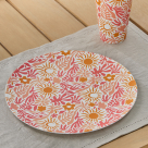 Ρηχό πιάτο σε πορτοκαλί αποχρώσεις κατασκευασμένο από πλαστικό υλικό. Με φλοράλ μοτίβο, είναι ιδανικό για πάρτυ και πικ νικ.