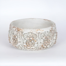 Κασπώ από την εταιρεία Estheti σε εκρού χρώμα με vintage σχέδιο. Είναι κατασκευασμένο από τσιμέντο. Μπορεί να χρησιμοποιηθεί για να τοποθετήσετε μέσα λουλούδια ή μόνο του σαν διακοσμητικό. Αναβαθμίστε την αισθητική των εσωτερικών και εξωτερικών χώρων σας με γλάστρες, κασπώ και ζαρντινιέρες.