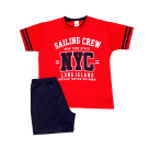 Παιδικές πιτζάμες από τη συλλογή Minervakia της εταιρείας Minerva. Πρόκειται για σετ από κοντομάνικη μπλούζα με σορτσάκι. Έχουν κόκκινο και μπλε χρώμα με μοντέρνα παράσταση και είναι ιδανικές για αγόρια. Είναι κατασκευασμένες από 100% βαμβακερό ύφασμα πεννιέ, που προσδίδει ιδιαίτερη απαλότητα, αντοχή και σωστή εφαρμογή. Είναι ιδιαίτερα ανθεκτικές και διατηρούν τη φόρμα τους. Τα χρώματα έχουν δημιουργηθεί με την μέθοδο της νηματοβαφής (μέσα στην ύφανση), με αποτέλεσμα να παραμένουν αναλλοίωτα στην χρήση και τις πλύσεις. Σε όλα τα στάδια παραγωγής έχουν χρησιμοποιηθεί υποαλλεργικά υλικά χωρίς επιβλαβείς ουσίες προς την υγεία. Διαθέτουν τα διεθνή πιστοποιητικά ποιότητας και ασφάλειας ISO 9001:2000 , ISO 9002, Oeko-Tex Standard 100, Eco Textile Label. Αποτελούν προϊόντα ελληνικής ραφής με την εγγύηση ποιότητας και αξιοπιστίας της εταιρείας Minerva. Μεγεθολόγιο ανάλογα με ηλικία και ύψος παιδιού: Νο1 (1-2 ετών, 78-90cm), Νο2 (2-3 ετών, 90-98cm), No3 (3-4 ετών, 98-104cm), No4 (4-6 ετών, 104-116cm), No6 (6-8 ετών, 116-128cm), No8 (8-10 ετών, 128-140cm), No10 (10-12 ετών, 140-152cm), No12 (12-14 ετών, 152-164cm για αγόρι, 152-158cm για κορίτσι), No14 (14-16 ετών, 164-172cm για αγόρι, 158-164cm για κορίτσι), No16 (16-18 ετών, 172-180cm για αγόρι, 164-170cm για κορίτσι)