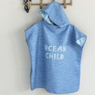 Παιδικό πόντσο με κουκούλα από την εταιρεία Nima σε μπλε χρώμα με γαλάζιες λεπτομέρειες και μοντέρνο σχέδιο. Είναι κατασκευασμένο από 100% microfiber, με πετσετέ σύνθεση στο εσωτερικό. Μπορεί να χρησιμοποιηθεί στο καθημερινό μπάνιο ή ακόμα και στην παραλία.
