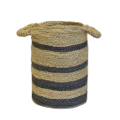 Καλάθι αποθήκευσης σε στρογγυλό σχήμα από την εταιρεία Mod. Είναι κατασκευασμένο από φυσική ψάθα σε μπεζ χρώμα με γκρι λεπτομέρειες. Διαθέτει λαβές για εύκολη μεταφορά. Ιδανικό για το μπάνιο, τη κουζίνα ή τη τραπεζαρία σαν διακοσμητικό ή σαν αποθηκευτικό χώρο για μικροπράγματα.
