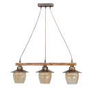 Φωτιστικό οροφής με ράγα της εταιρείας Heronia σε μοντέρνο στυλ. Τα καπέλα είναι κατασκευασμένα από διάφανο γυαλί σε μελί απόχρωση με μπρονζέ πλαστικό στο πάνω μέρος. Διαθέτει ράγα από ξύλο σε καφέ απόχρωση. Υπάρχει δυνατότητα αυξομείωσης του συνολικού ύψους έως 80εκ. μέσω των 3 καλωδίων ανάρτησης. Διαθέτει βάση τοποθέτησης και καλώδια σε μαύρο χρώμα. Τύπος ντουί: 3xE27 και θέσεις για 3 λαμπτήρες **ΑΠΟΚΛΕΙΣΤΙΚΑ LED έως 10W έκαστος** (δεν συμπεριλαμβάνονται). Δεν περιλαμβάνονται οι βίδες στερέωσης.