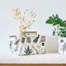 Καλάθι αποθήκευσης κατασκευασμένο από πολυεστερικό ύφασμα σε λευκό χρώμα με πράσινο σχέδιο. Μπορεί να τοποθετηθεί στην αλλαξιέρα, στο παιδικό δωμάτιο, στο μπάνιο, το playroom ή οποιοδήποτε χώρο του σπιτιού, που είναι απαραίτητη η αποθήκευση μικροπραγμάτων. Διαθέτει λαβές για εύκολη μεταφορά. Δώστε λύση στο πρόβλημα της τακτοποίησης, αναβαθμίζοντας αισθητικά τον χώρο σας. Συνδυάστε το με τα υπόλοιπα είδη του ίδιου σετ για ένα ολοκληρωμένο αποτέλεσμα στο χώρο σας.