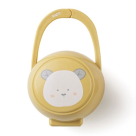 Θήκη πιπίλας σε μουσταρδί χρώμα και σχέδιο ζωάκι από την εταιρία Saro. Είναι κατασκευασμένη από πλαστικό. Είναι ιδανική για να σας επιτρέπει να αποθηκεύετε δύο πιπίλες. Η λαβή του σας επιτρέπει να το κρεμάτε από την τσάντα, το καρότσι ή την κούνια μέχρι την επόμενη χρήση. Κατάλληλο για να διατηρούνται οι πιπίλες πάντα καθαρές.